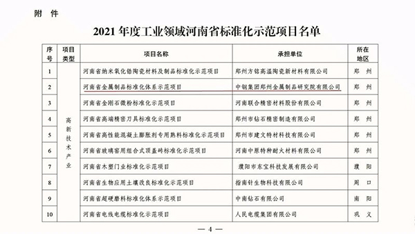 中鋼集團(tuán)鄭州金屬制品研究院股份有限公司榮獲河南省2021年度工業(yè)領(lǐng)域標(biāo)準(zhǔn)化示范項(xiàng)目。